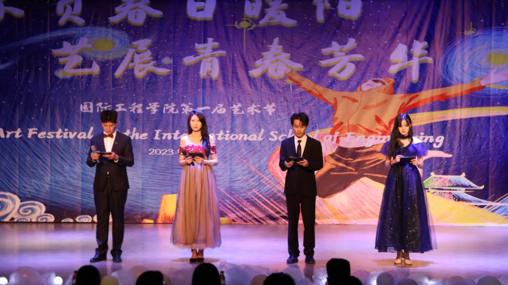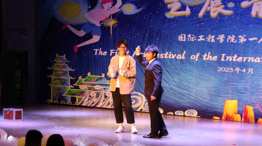 2023年4月15日晚,365英国官网第一届艺术节晚会在鸣飞堂二楼盛大开幕。365英国官网领导、各年级班主任代表、学生工作教师以及各年级学生代表齐聚一堂,共同观看了本场晚会。